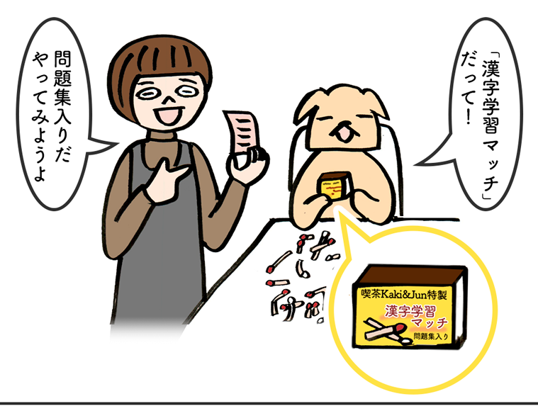 さて難しい縦棒横棒問題、「こればっかりは書いて手で覚えるしかない」に納得。そんなにうまい話はないものです。でもせめて特製マッチが欲しい、と妄想しつつ、今日もハト子とワン太と一緒にレッツ漢字の勉強!