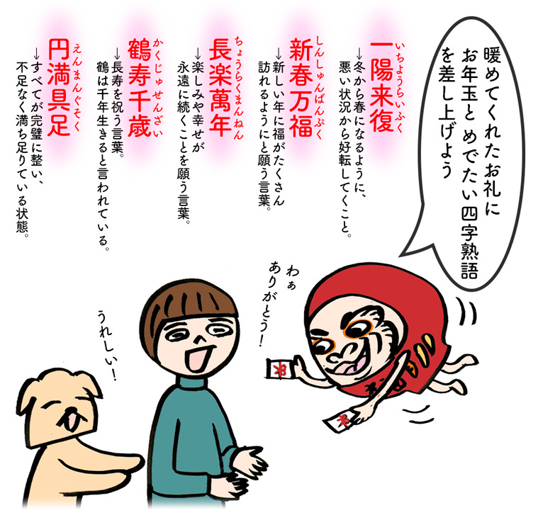 今年もご愛読、誠にありがとうございました。来年も、ハト子とワン太と一緒にレッツ漢字の勉強!