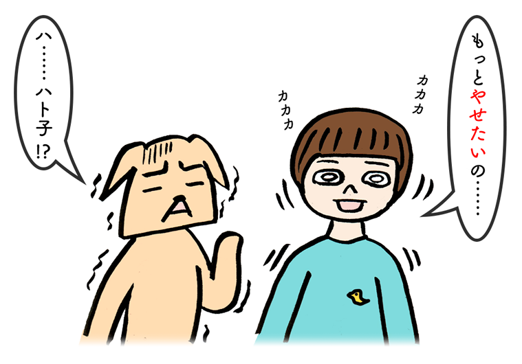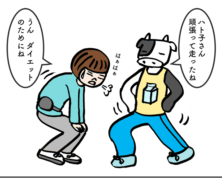ハト子、がんばってるね! 牛さんと一緒に(カタツムリとなめくじは不在)すでに十分スリムになっている気がしますが、痩せたい願望がオーバーヒート中のよう。