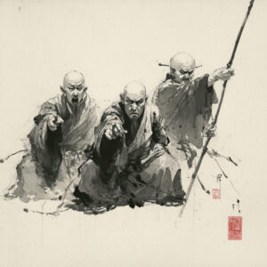 ある時は棒で殴りかかったり、頭ごなしに一喝を加えたり、指を一本立てて見せたり、拳を突き上げたりもする。