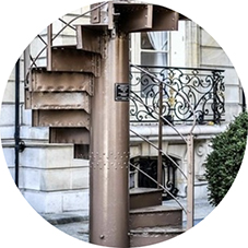 「なるほどねえ」と感心した。この螺旋階段なら、中庭の美観を損ねることはない。場所もとらないし、ツタがからまったような優雅な金属装飾が施されているし、ところどころに植木鉢もぶら下がっている。季節が冬なので植木鉢はみな土だけだったが、春になったらさぞかし綺麗な螺旋階段になるのだろう。