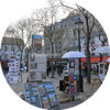 目指すテルトル広場は、サクレ・クール寺院の裏手にあった。なんとなく想像していたよりもずっとこじんまりとした、石畳の小さな広場だ。色とりどりのパラソルが立っている。その下でイーゼルを立てて描いている画家が、いるわいるわ。肩が触れるようにして密集している。スケッチブック片手に歩いている画家もいる。全部でざっと50人はいるだろうか。もっといるかもしれない。確かにこんな場所は、日本じゃちょっとお目にかかれない。