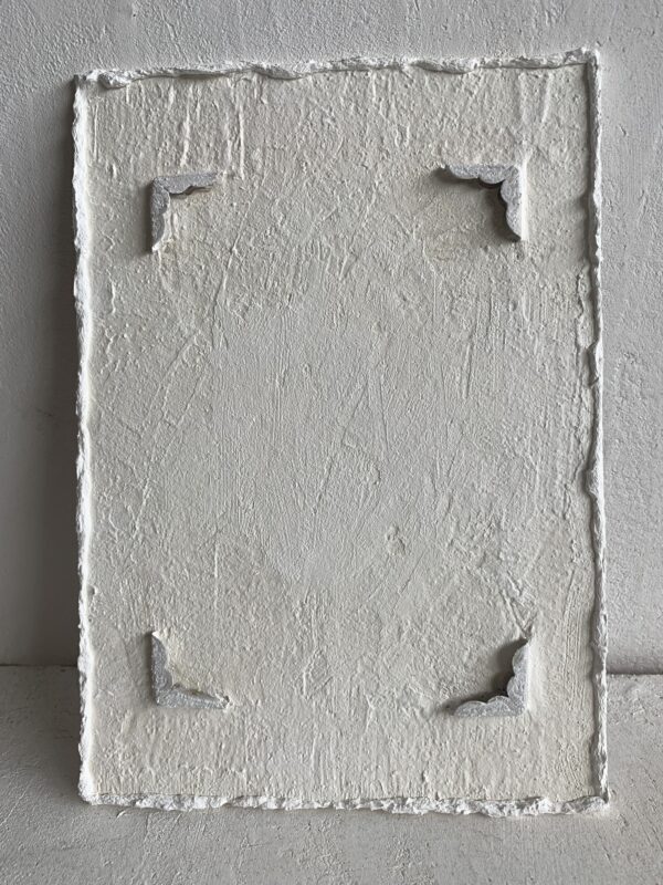 A5サイズのMDFボードにコーナー金具を取り付けて、表面に漆喰を塗りました。