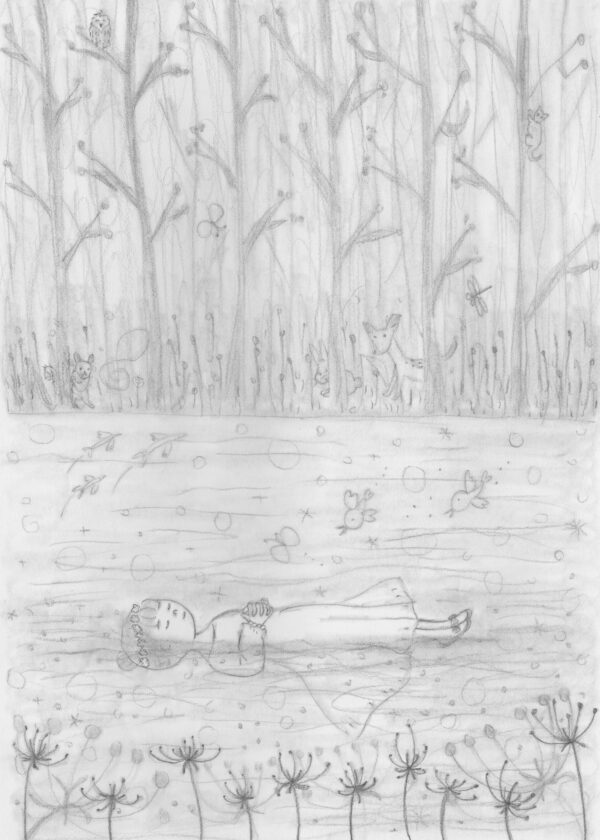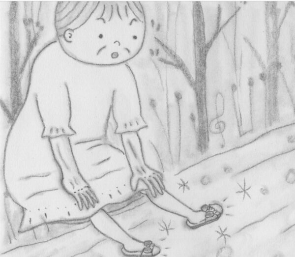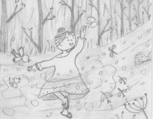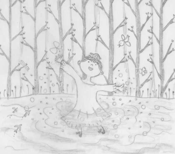 シロツメグサの冠を被るとお婆さんはすっかり少女の姿になり、パヴァーヌを踊ります。
