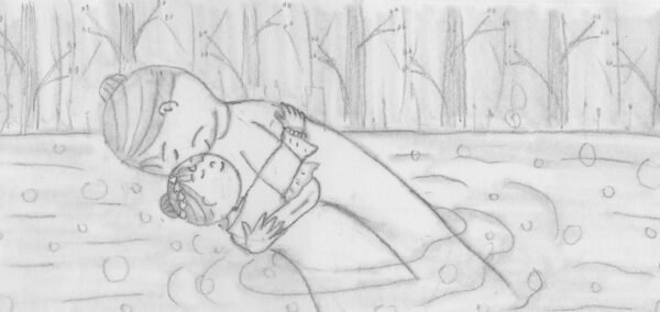 さて、漫画の解説ですが、場面は三途の川のようなものをイメージして描きました。