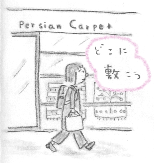 ところで話は変わりますが、バイト先の近所に、気になるお店があります。ペルシャ絨毯専門店です。いつもは素通りするのですが、先日、何となく入った勢いで、ギャッベという羊毛の小さなマットを買いました。