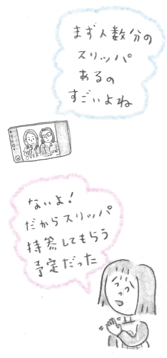 結局、家中の室内履きをかき集めたらどうにか間に合いました。