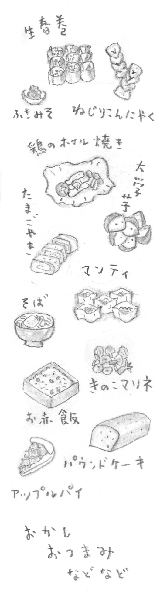 食べ物は一人一品みんなで少しずつ分けられる分量を持ってきてもらいました。