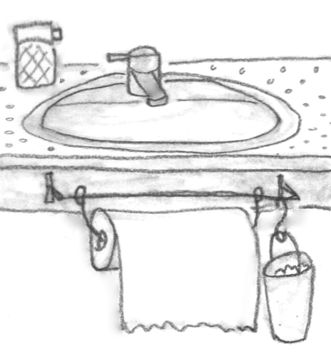 タオル掛けに針金でキッチンペーパーとゴミ箱をぶら下げました。