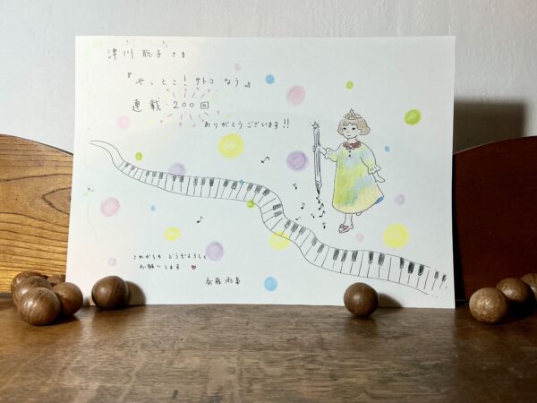 そして私が送ったメッセージのイラストは、『アックス』誌第167号に掲載された名作ピアノ漫画『亡き王女のためのパヴァーヌ』(作者による自作ネタバレ漫画でもご紹介しています)を意識して描きました。モデルは津川聡子さんご本人。この漫画はピアノ漫画の中でも私のお気に入り・イチオシです。まずはネタバレ解説漫画をぜひご覧ください♪